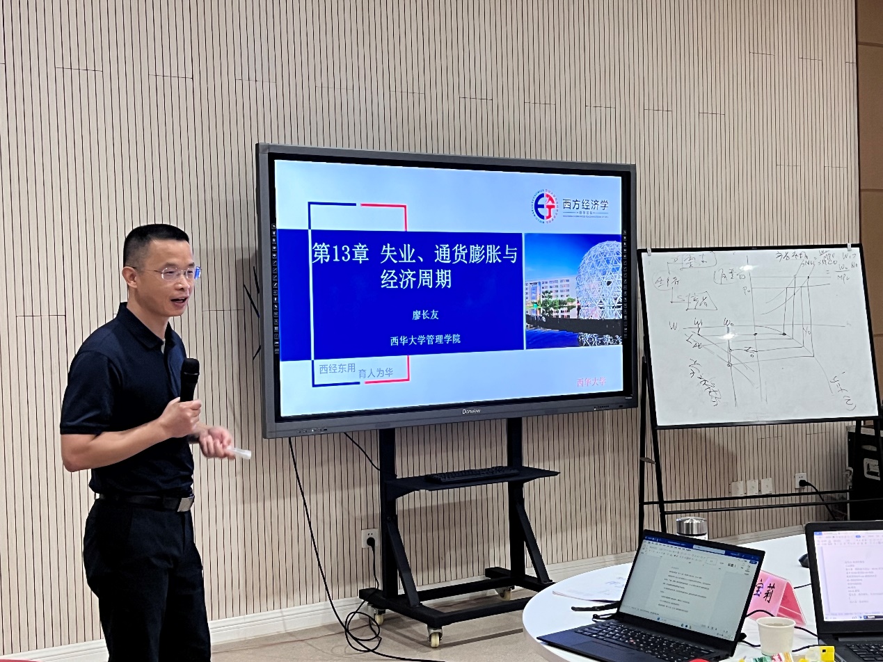 说课结束后,董永祥博士为老师们作了“利率与宏观经济模型”的精彩讲座,开拓了老师们的学术视野。此外,备课会还邀请马工程重点教材《西方经济学》课题组首席专家吴汉洪教授作了题为“金融与宏观经济”的专题讲座。吴教授充分肯定了备课会这种交流学习形式,并鼓励西方经济学教学团队继续举办这样的会议,扩大影响力。