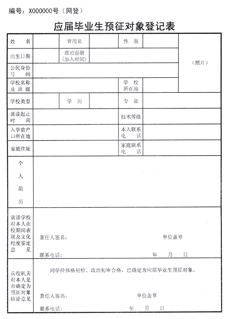 (三)每年10月31日前,高校毕业生到入学前户籍所在地报名应征时将《应届毕业生预征对象登记表》及《应征入伍高校毕业生补偿学费代偿国家助学贷款申请表》交县(市、区)人民政府征兵办公室。
