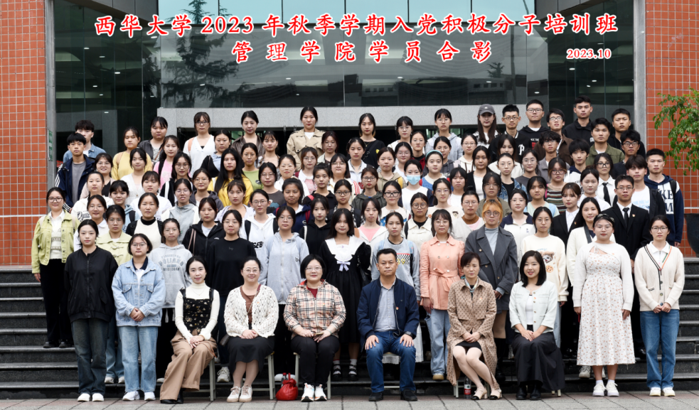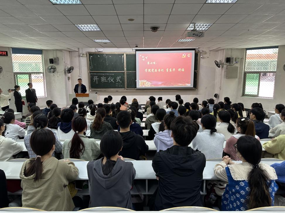 雄关漫道真如铁,而今迈步从头越。在领誓人的带领下,入党积极分子培训班全体干部和学员分别起立宣誓,铿锵有力的誓言彰显出同学们昂扬的斗志和坚定的决心。随后,肖东华书记提到,作为一名入党积极分子,需要建立正确的目标,面对考验不动摇,将对中国共产党的热爱之情转化为行动的力量,始终把自己的一言一行严格置于党的纪律之下。同时以时不我待、舍我其谁的精神敢挑时代重担,以奋斗姿态激扬青春,担当起时代赋予青年人的崇高使命。此次开班仪式在《没有共产党就没有新中国》的歌声中圆满结束。最后,所有参会人员移步至四教门前合影留念。