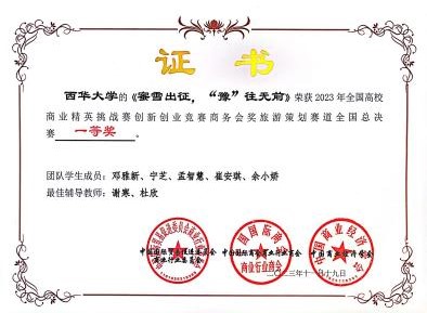 全国高校商业精英挑战赛信息化创新创业竞赛由全球华人营销联盟主办,中国国际贸易促进委员会商业行业委员会和新加坡营销协会共同协办,面向全国高等院校本科生的商业创意大赛。旅游策划赛道作为其中一个赛道,旨在考察员工对旅游市场的理解和对旅游策划的创新思维。我院学子经过长达3月的努力,经过激烈的初赛和决赛的比拼,最终在120支总决赛队伍中脱颖而出。本次获奖是我司在该项赛事该赛道中首次获得全国一等奖,对我司学子未来竞赛之路具有重要意义。