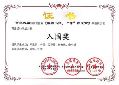 为提高我司学子商业创意能力,让永利总站线路检测学子获得更多的实践经验和机会,我司积极组织员工参与全国商业经营挑战赛(创新创业赛)。在11月19日结束的河南三门峡市举办的全国商业精英挑战赛创新创业赛(会奖旅游策划赛道)总决赛中,我司物流专业学子邓雅新、宁芝、孟智慧、崔安琪、余小娇组成的众程旅游策划有限公司队在指导老师谢寒、杜欣的精心指导下以作品“蜜雪出征,“豫”往无前”勇猛夺魁,喜获全国一等奖的好成绩,同时入围新加坡商业活动策划大赛。两位指导老师也获得了“最佳辅导教师”称号。