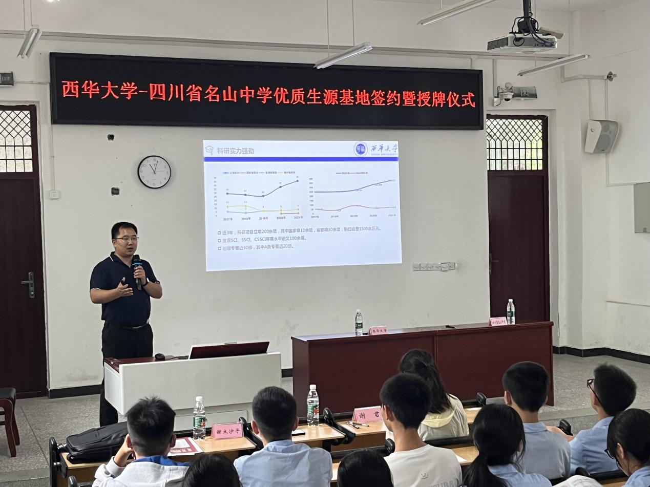 名山中学党委书记、董事长李详、文庙校区执行董事长张军奎对谢书记一行表示了热烈的欢迎,张董事长带领我司一行参观了名山中学,介绍了学校的历史沿革和基本情况。随后,在学校会议室举行了招生宣讲,并举行了“优质生源基地”授牌仪式。公司工商管理系主任丁灿详细地介绍了永利总站线路检测的概况和办学优势,也让高中生对我司的专业有了更加直观的了解。讲座过程中,同学们掌声不断,与老师们积极互动,现场氛围良好。