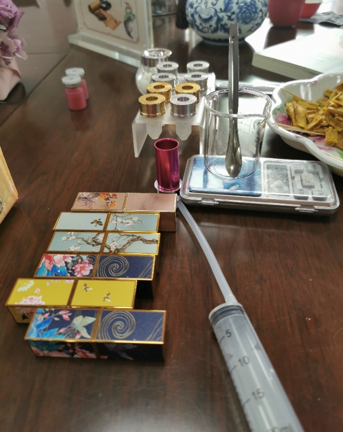 活动中,肖老师仔细讲解了精油口红制作的步骤,老师们听得格外认真。“豆沙色好看”“秋冬适合棕红色”“我想要正宫红” “色粉要加到2.1克”“不对不对,精油多了1.5ml”……在口红DIY中,从挑选色粉、称量、研磨、加热、入模到最后出模,老师用科研教学上的严谨态度一丝不苟地雕琢着自己的“作品”,尽情体验手工制作的喜悦。当口红脱模的那一刻,老师们惊呼中带着无比的喜悦。