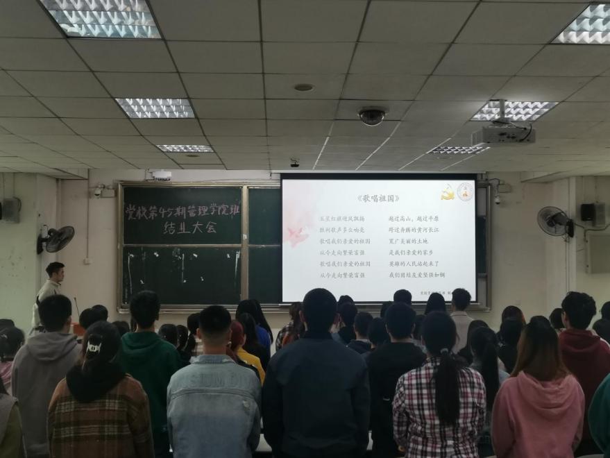 大会在《没有共产党就没有新中国》的嘹亮歌声中拉开序幕。回顾第45期忙碌而充实的党校生活,视频《星霜荏苒,白衣卿相》中一幕幕回忆是送给大家最好的结业礼物。一分耕耘一分收获,大会上,夏季老师和往期班长为优秀组长及优秀学员颁奖,感谢干部们的辛勤付出,并对全体学员顺利结业表示祝贺。忆起党校生活大家感慨万千,学员代表张红分享了自己的收获,并表示会将在党校学习的知识和精神贯彻到每一个行动中去,严于律己、勤学苦练,求真务实、敢于担当。随后,指导老师夏季对第45期学员送出寄语,鼓励大家继续保持党校期间的学习态度,努力学习专业知识、提高思想道德修养,将对党的热爱化作行动,在各个领域发光发热。最后,全体齐唱《歌唱祖国》,大会顺利结束。