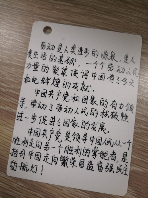 首先,参加活动的员工代表在三教集合,在员工干部的指导下制作以劳动和建党100周年为主题的纸牌,表达同学们爱劳动、爱中国共产党的情感。随后,员工代表奔赴五教自行车停放区域,进行自行车摆放、车筐垃圾清理、刹车检查等工作。整理规整后,员工将制作的特色纸牌悬挂于车把手处,书写有对建党百年的祝福、讴歌劳动者无私奉献的精神、安全标语等各式纸牌在微风中飘扬,劳动的愉悦在阳光下更加闪耀!