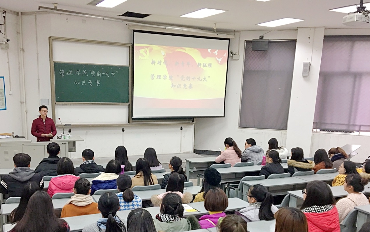 活动在《没有共产党就没有新中国》的歌声中拉开帷幕。本次比赛采取积分制的方式进行,包括团队协作、竞赛抢答及随机抽答三个环节,内容涵盖十九大报告精神、新党章、党的基本方针政策等,全体参赛同学严肃认真、积极作答,体现了较好的精神风貌。随后观看了“两学一做”微党课视频。最后,学校组织员赵赋聪同学进行总结发言并公布比赛结果,他强调党员同志应当积极实践,知行合一,将十九大精神融入到生活、学习、工作中去,在奉献中实现人生价值。
