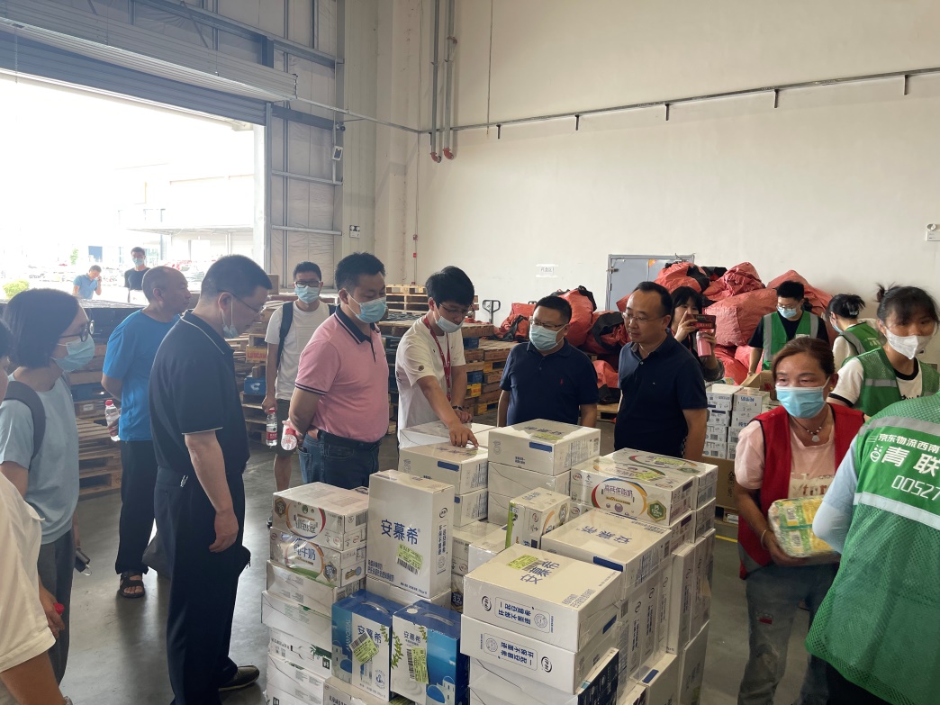 公司领导在京东物流仓库现场了解员工实习情况