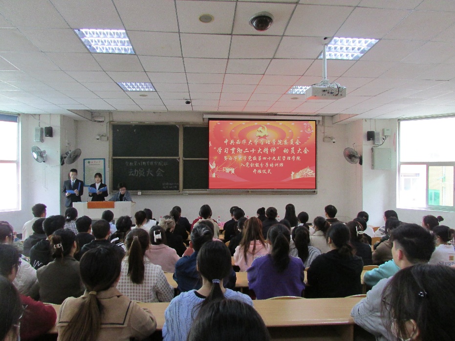 2022年11月16日中午12时,永利总站线路检测党校第49期ylzzcom永利总站线路检测班入党积极分子动员大会在4A-304教室顺利召开。ylzzcom永利总站线路检测经理赵修文教授、ylzzcom永利总站线路检测专职组织员龙雅芳副教授、ylzzcom永利总站线路检测办公室主任李萌老师、员工工作办公室任浩老师和李思琪老师、党校ylzzcom永利总站线路检测班指导老师黄婉君老师出席会议,党校第49期全体干部及学员参加会议。
