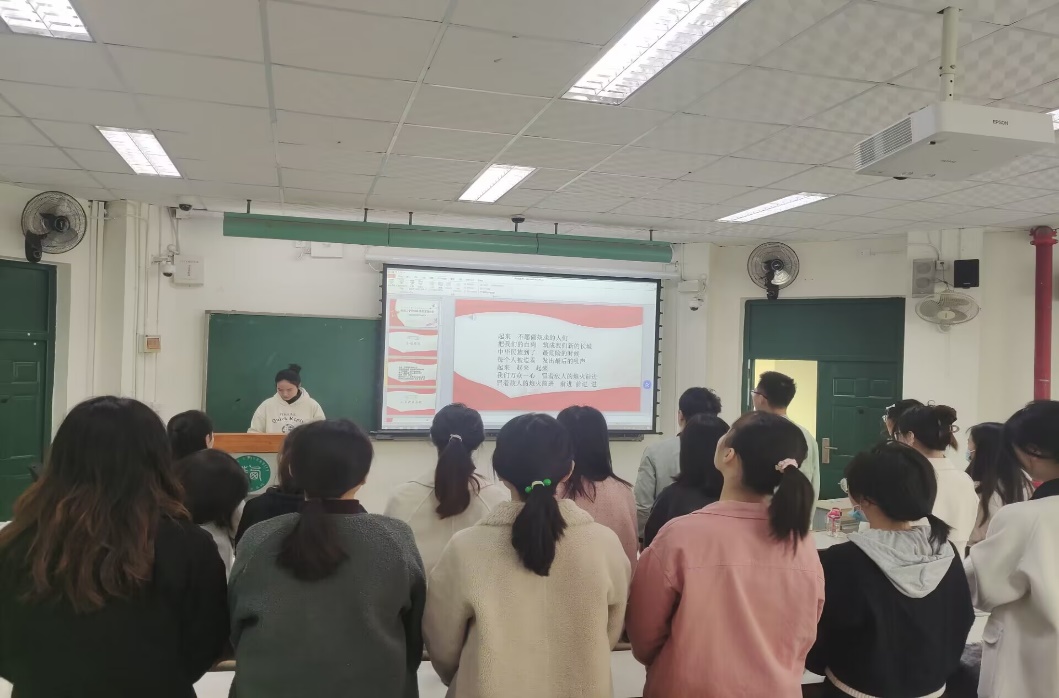 最后,支部书记黄婉君老师进行会议总结发言。她对本次会议的开展表示肯定,并阐述近期支部工作重点。同时对支部同志提出要求和期望:一是要加强理论学习,不断提高政治站位,继续加强对二十大的学习;二是要加强党支部的建设,全面从严治党,要积极发挥基层党支部的战斗堡垒作用;三是要勇于向优秀的党员同志学习,把自己的青春融入到为国为民的土壤中,生根发芽,不断锤炼过硬本领。