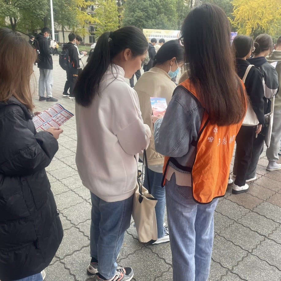 上午10时,学员们在明德广场集合完毕后,便开展宪法学习宣传手册的派发,并对路过的同学进行宪法普及教育。同学们都驻足片刻,认真听学员讲述二十大报告中的法治元素以及习近平总书记的重要论述。
