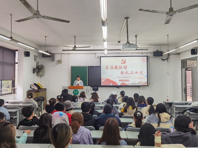 下午16时,学员们在5B-203集合,向ylzzcom永利总站线路检测2022级新生进行宪法宣讲。学员们分别从不同的角度挖掘二十大报告中的法治元素,给同学们带来一场意义深厚、趣味十足的普法教育。新生同学表示,通过此次宪法宣传活动,让他们认识到要做社会主义法治的忠实崇尚者、自觉遵守者、坚定捍卫者。