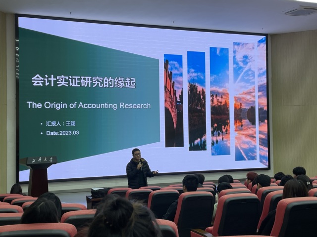 为提升学院员工对各自专业的深度理解,提升专业能力,清晰明确自身未来发展方向,3月23日下午16点,在宜宾校区一教101报告厅举办“会计实证研究的缘起”主题讲座,本次讲座特邀会计与财务系主任王翊博士担任主讲,资产评估专业和会计学专业的大二、大三员工参加了此次讲座。
