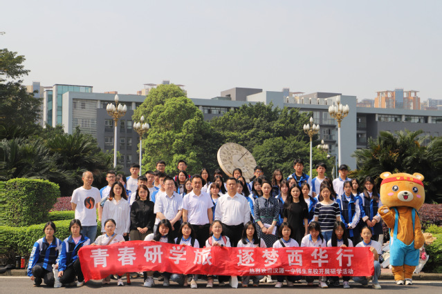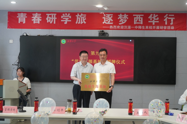 欢迎仪式上,赵修文代表学校向汉源一中授予“优质生源基地”称号,全体与会师生于求是广场合影留念。