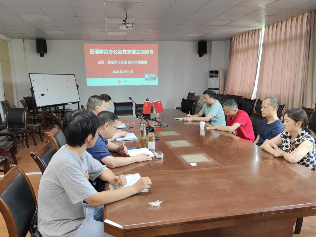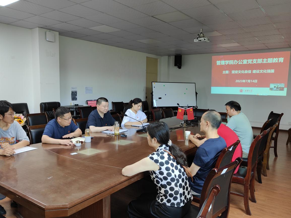 参会人员围绕“坚定文化自信,建设文化强国”开展了讨论。公司党委委员、经理赵修文同志表示办公室党支部拥有优秀的团队工作文化和价值观,为学院发展和服务师生做出巨大贡献,要继续把文化自信落到实处,建立共同的工作价值观。党委委员、副经理姚世斌表示中国文化是包容的,和平的,也是创新的,办公室党支部始终坚持“以人为本”服务师生,要优秀的服务文化推广传承。专职组织员龙雅芳同志表示教育工作者把文化育人贯穿至立德树人的整个过程。党委委员、支部书记、党政办主任饶芳表示,要认同民族文化、学院文化和办公室文化,不断坚定文化自信,同时也要不断创新和传承优秀文化,做好本职工作,推动文化自信落地落实。其他党员同志也进行了心得交流和专题讨论。