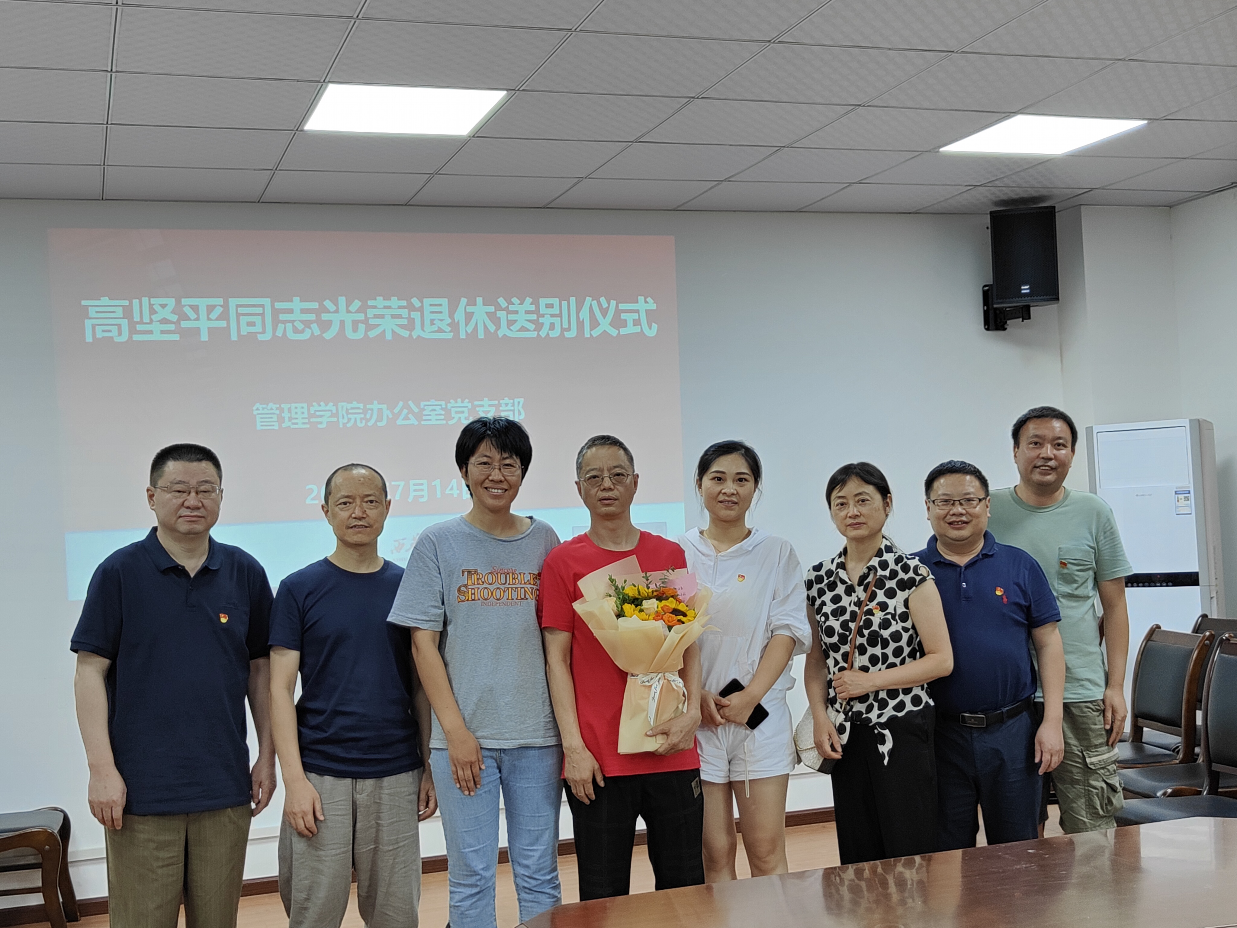 7月14日,ylzzcom永利总站线路检测办公室党支部在3E-402会议室开展主题党日活动,欢送退休党员高坚平同志。